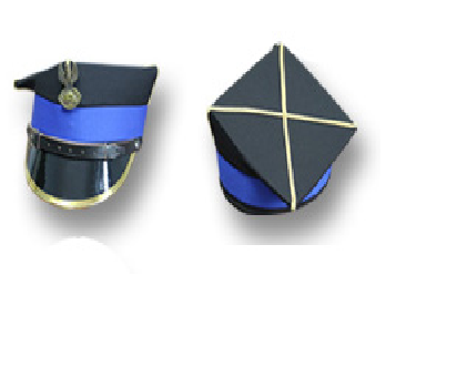 Główka połączona jest z otokiem. Wewnętrzna strona główki i otoku wyściełana jest podszewką. Po wewnętrznej stronie obręczy wszyty jest potnik ze skóry naturalnej oraz daszek obustronnie oklejony czarną lustrzaną folią PCV, z krawędzią okutą metalem w kolorze złotym. Pod potnikiem znajduje się taśma z filcu, oddzielająca potnik od obręczy. Na otok założona jest zszyta w części tylnej taśma otokowa w kolorze niebieskim.