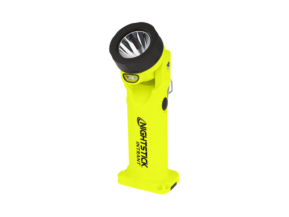 InformacjeNIGHTSTICK XPP 5566GX INTRANT to iskrobezpieczna, bateryjna latarka kątowa LED z certyfikatem ATEX do STREFY 0. Latarka może być użytkowana zarówno w naziemnych, jak i podziemnych strefach zagrożonych wybuchem pyłów lub gazów. INTRANT charakteryzuje się kompaktowymi wymiarami, niewielką wagą - tylko 315 g oraz ruchomą głowicą - w zakresie od 0o do 90o, dzięki której latarka ma aż 3 pozycje świecenia. Wyposażona w system Dual-Light™, który łączy w sobie 3 funkcje świetlne: światło skupione, rozproszone oraz oba te rodzaje światła działające jednocześnie.