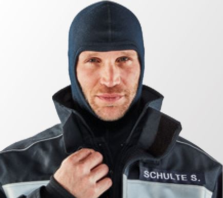 Odporna na płomienie i promieniowanie cieplne kominiarka, wykonana w 100 % z materiału NOMEX® III, ok. 245 g/m2. Dwuwarstwowa kominiarka z jednowarstwowym kołnierzem. Obszyty w całości otwór na twarz i szyję. Materiał przeszyty za pomocą nici KEVLAR® i NOMEX®. Można ją nosić w połączeniu z hełmami strażackimi i maskami AOUO.