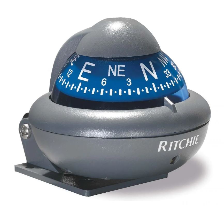 InformacjeUniwersalny kompas Ritchie z 5 cm tarczą i regulowanym uchwytem. Kolor szary, tarcza niebieska.