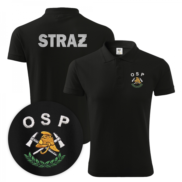 Koszulka polo OSP lub z  OSP z nazwą miejscowości.