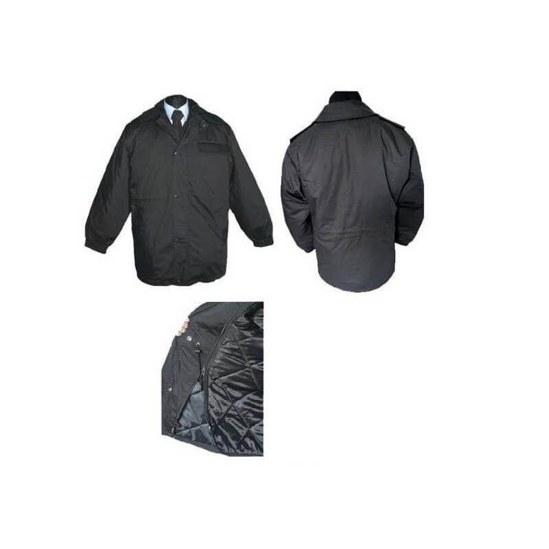 Kurtka wykonana jest z tkaniny elanobawełnianej w kolorze czarnym, z wykończeniem wodo i olejoodpornym. Ocieplana lekką włókniną puszystą jednostronnie pikowaną dzianiną poliestrową. Kurtka zapinana z przodu na zamek błyskawiczny 2-suwakowy, z wierzchu przykryty listwą zapinaną na 5 guzików zatrzaskowych, a od spodu z podkładem z tkaniny zasadniczej. U dołu tunel ze sznurkiem zakończonym stoperami. W częściach przodu u dołu wykonane są kieszenie boczne, skośne z listewkami oraz kieszeń górna z klapką, na lewej części przodu. W tunelu naszytym od wewnątrz na linii talii, umieszczony jest sznurek ze stoperami do regulacji obwodu. Kołnierz z odcinaną stójką, dopinanym kapturem od strony zewnętrznej i kołnierzem ocieplającym wykonanym z dzianiny, dopinanym od strony wewnętrznej. Naramienniki zapinane na guziki, wszyte w szwy barkowe. Rękawy dwuczęściowe o specjalnej konstrukcji uwzględniającej zastosowanie klinów w konstrukcji podszewki i podpinki, wszyte do pogłębionej pachy u dołu zakończone tunelem z gumą wewnątrz. W podszewce rękawów pod pachą doszyte są kliny:w przedniej części rękawa z podszewki, w tylnej części z siatki. Na obłożeniu lewej części przodu wykonano kieszeń z dwiema wypustkami zapinaną na zapinkę i guzik. Do krawędzi obłożeń przodu i tylnego podkroju szyi doszyta jest część zamka błyskawicznego rozdzielczego, do przypięcia podpinki. Podpinka wykonana jest z lekkiej włókniny puszystej, dwustronnie pikowanej dzianiną syntetyczną. Dół rękawów wykończony jest zarękawnikami z dzianiny ściągaczowej. Do krawędzi podpinki oblamowanej taśmą z dzianiny syntetycznej doszyta jest druga część zamka błyskawicznego do przypięcia do kurtki.