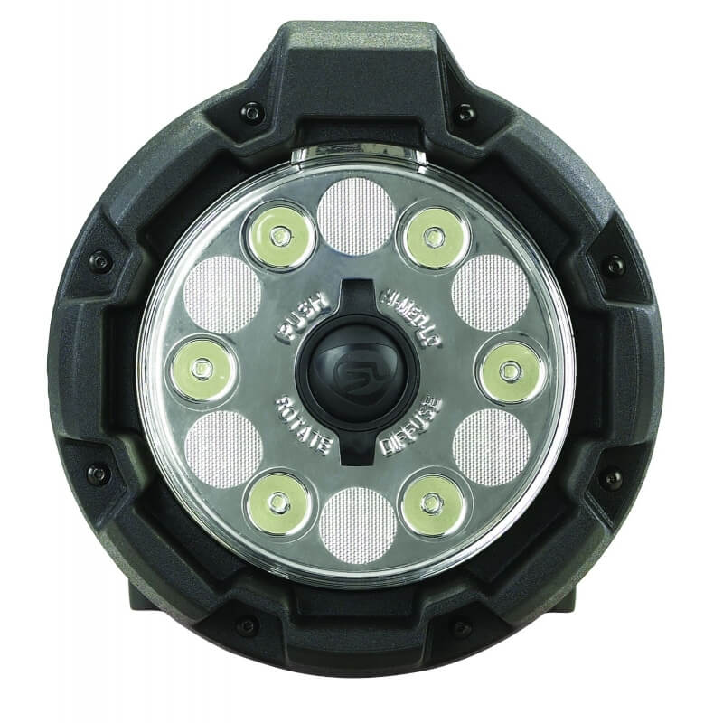 Najaśnica Streamlight Portable Scene Light Ext wyposażona jest w rozkładany maszt o maksymalnej wysokości 213,36 cm. Ponad to oferuje zmienne ustawienie dyfuzora dla dwóch szerokości wiązki światła zapewniając optymalne oświetlenie obwodowe do oświetlania pola pracy. Obrotowa szyjka pod kątem 90° pozwala na skierowanie wiązki tam, gdzie jest ona potrzebna przy oświetleniu zadaniowym.