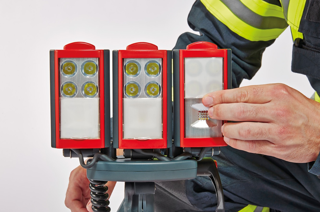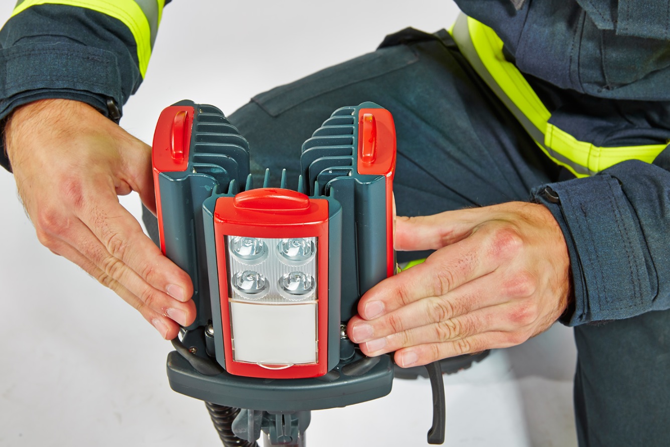Nowa, całkowicie „elastyczna” głowica oświetleniowa LED systemu RLS2000 jest kolejną z funkcjonalnych zalet tego popularnego systemu oświetleniowego. Nieograniczone możliwości z użyciem wielofunkcyjnej głowicy oświetleniowej poruszającej się w każdym kierunku: od mocnego oświetlenia punktowego do działań poszukiwawczo – ratowniczych, aż do 360° szerokokątnego oświetlania pola pracy. Możliwe jest także połączenie obu trybów pracy.