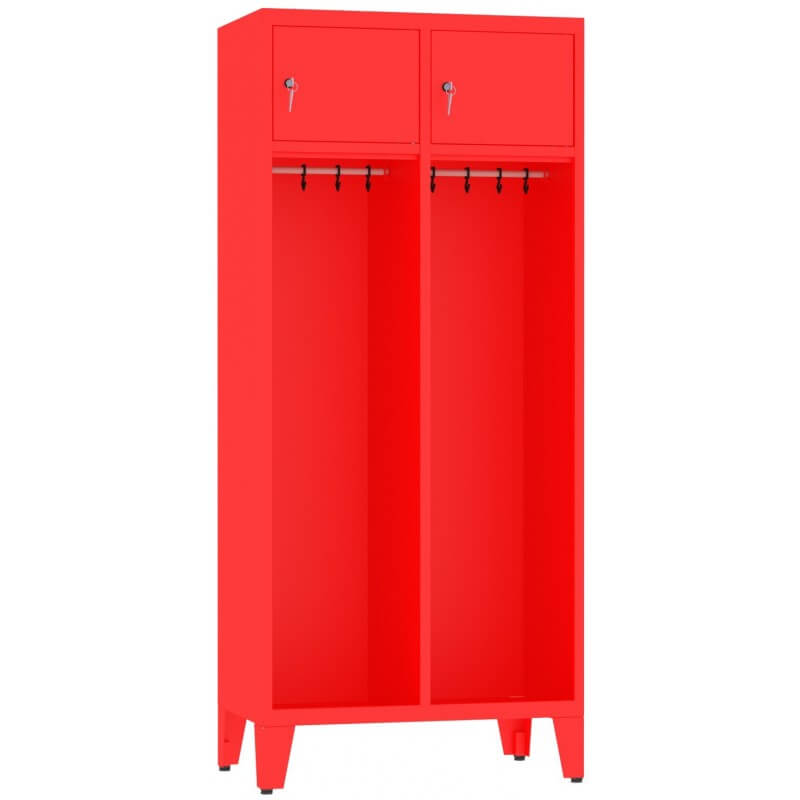 Solidna konstrukcja stalowa z wysokiej jakości blachy europejskich producentów, w podłodze otwory odprowadzające wodę, w każdej komorze drążek i zawieszki na ubrania, nogi ze stópkami regulacyjnymi, ułatwiają sprzątanie pod szafą oraz poziomowanie, łatwość utrzymania czystości dzięki gładkiej, jednolitej powierzchni