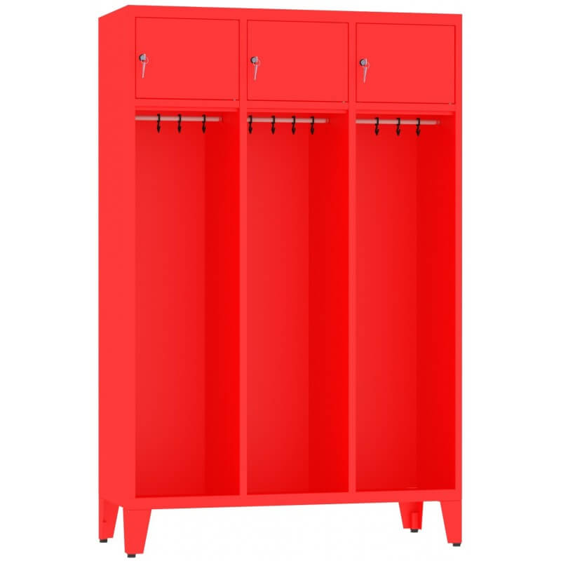 Solidna konstrukcja stalowa z wysokiej jakości blachy europejskich producentów, w podłodze otwory odprowadzające wodę, w każdej komorze drążek i zawieszki na ubrania, nogi ze stópkami regulacyjnymi, ułatwiają sprzątanie pod szafą oraz poziomowanie, łatwość utrzymania czystości dzięki gładkiej, jednolitej powierzchni