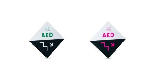 Tabliczki pozwalające na szybkie zlokalizowanie defibrylatora AED na większym obszarze. Przydatne we wszystkich budynkach posiadających piętra oraz schody, czyli np. biurowcach, budynkach mieszkalnych, galeriach handlowych.Tabliczka służy oznaczeniu w miejscu, w którym defibrylator znajduje się na niższym piętrze.