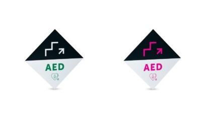 Tabliczki pozwalające na szybkie zlokalizowanie defibrylatora AED na większym obszarze. Przydatne we wszystkich budynkach posiadających piętra oraz schody, czyli np. biurowcach, budynkach mieszkalnych, galeriach handlowych.Tabliczka służy oznaczeniu w miejscu, w którym defibrylator znajduje się na wyższym piętrze.