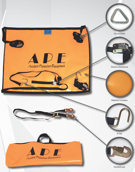 InformacjeZabezpieczenie poduszki powietrznej pasażera składa się z pokrowca wraz z impregnowanymi taśmami, klamrami i hakami typu s-hak. Pokrowiec zakładany jest celem zabezpieczenia osoby poszkodowanej bądź ratownika przed niekontrolowanym wybuchem poduszki powietrznej. Pokrowiec wykonany jest z pięciowarstwowego materiału complan oraz impregnowanych taśm poliestrowych. Materiał ten charakteryzuje się wytrzymałością i doskonałymi właściwościami absorpcji dzięki czemu pochłania energie wybuchającej poduszki powietrznej tłumiąc jej siłę działania.